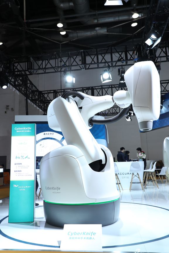 與此同時(shí),安科銳旗下的CyberKnife®射波刀放射外科手術(shù)機器人系統也在本屆CHINA MED上進(jìn)行了展示。作為目前世界上唯一的一款智能機器人放射治療設備,CyberKnife®射波刀適用于全身以及顱內的放射外科治療,可以實(shí)時(shí)在放療過(guò)程中對腫瘤靶區進(jìn)行如影隨形的跟蹤和修正,治療精度達到亞毫米級,在進(jìn)行高效治療的同時(shí),也能保護好正常的組織,為腫瘤患者提供全面、快捷、高效的精準腫瘤放射外科/放療解決方案。