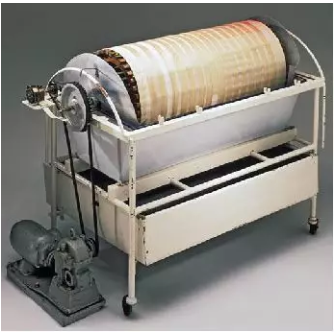 1943年,荷蘭人威廉?科爾夫(Willem Kolff)用一個(gè)木條制成旋轉的鼓桶,纏繞了30~40米醋酸纖維素膜,放到一個(gè)透析液缸里?;颊叩难菏菑氖滞髣?dòng)脈進(jìn)入半透膜腸衣,通過(guò)轉動(dòng)的鼓推動(dòng)血液體外循環(huán),置于鹽水浴中攪拌。由于腸衣是半滲透的,尿素等廢物被排出,大分子蛋白被保留。然后將經(jīng)滲透后“干凈” 的血液輸送回患者體內,就這樣“人類(lèi)第一臺”透析機便誕生了。