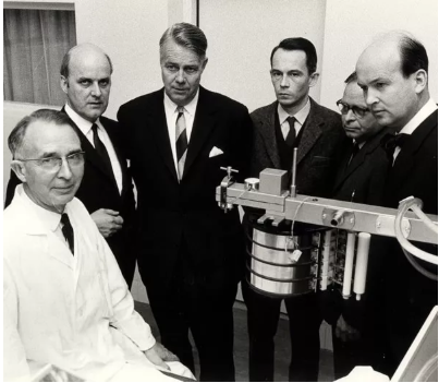 第一次血管通路手術(shù)發(fā)生在1948年,尼爾斯Nils Alwall(1904-1985)(左一)和萊納特?奧斯特格林(Lennart ?stergren)(左四),在瑞典名校隆德大學(xué)對轉鼓人工腎進(jìn)行了改進(jìn),使其能通過(guò)負壓進(jìn)行超濾。但由于各種并發(fā)癥,1949年被迫停止了該類(lèi)手術(shù)。