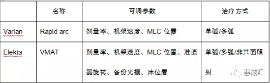 下表主要是關(guān)于錐形束加速器臨床技術(shù)的發(fā)展演變情況。