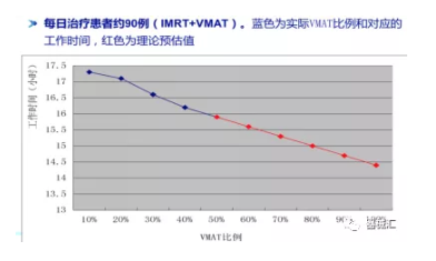 需要說(shuō)明的是,有些技術(shù)本身并不是為了加快治療速度而發(fā)展起來(lái)的,例如,大分割放療技術(shù),其發(fā)展的本質(zhì)是基于其生物效應優(yōu)勢。但是我們不能否認,該技術(shù)的發(fā)展確實(shí)減少了定擺位的累計次數和時(shí)間,等于是減少了整個(gè)的治療時(shí)間,有利于在同樣多的時(shí)間里可以治療更多的患者。同樣,多采用VMAT技術(shù),和普通IMRT相比,也能減少工作時(shí)間。如下圖所示: