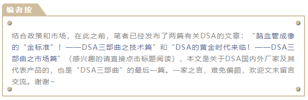 無(wú)怪乎國內DSA市場(chǎng)長(cháng)期被進(jìn)口品牌占據,許多醫生們表示壓根沒(méi)聽(tīng)說(shuō)國產(chǎn)DSA品牌。除了數量上的劣勢,產(chǎn)品和技術(shù)上的差距,同樣是國產(chǎn)DSA被進(jìn)口品牌吊打的原因。來(lái)看看國產(chǎn)與進(jìn)口DSA廠(chǎng)家及其各自的DSA產(chǎn)品。
