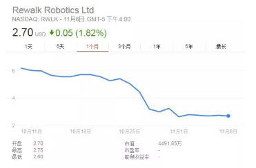 ReWalk公司于2014年9月在納斯達克上市,上市第一個(gè)月受到了市場(chǎng)追捧,股價(jià)創(chuàng )新高,最高超過(guò)30美元,較發(fā)行價(jià)上漲超過(guò)3倍,動(dòng)態(tài)PS達到80倍。但由于持續大額的虧損以及遲遲打不開(kāi)市場(chǎng),之后股價(jià)就開(kāi)始一路下挫。