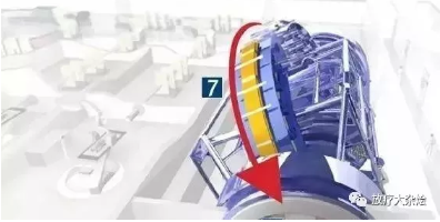 8. 旋轉架中的處理室:這是光束離開(kāi)旋轉架光束線(xiàn)的地方。兩個(gè)旋轉數字x射線(xiàn)系統用于在照射之前通過(guò)圖像引導來(lái)優(yōu)化患者位置。