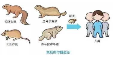 1.蚤叮咬的傳播方式為鼠-蚤-人,即跳蚤叮咬病鼠后再叮咬人,或剝取染疫旱獺皮或剝食其它染疫動(dòng)物,此類(lèi)傳播方式常引起腺鼠疫或敗血型鼠疫。