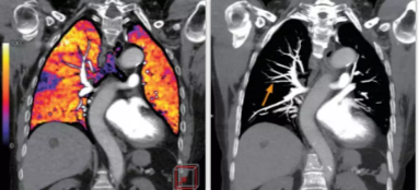 相比傳統成像方式,肺部柔性減影技術(shù)通過(guò)人工智能,對平掃數據和CT肺動(dòng)脈血管掃描數據進(jìn)行智能比對,解碼并識別各個(gè)器官(肺、氣管、肺動(dòng)脈、肺靜脈、主動(dòng)脈等)的空間位置,并在三維空間中進(jìn)行體素級的柔性配準,從而極大提升了不同序列數據的空間位置的一致性。通過(guò)肺部柔性減影技術(shù)可得到肺強化碘圖,可以顯示出傳統CTPA圖像看不到的小栓塞病變,提高了栓塞檢出率,其結果甚至可與SPECT吻合。
