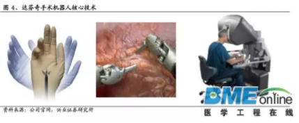 達芬奇手術(shù)機器人代表著(zhù)當今手術(shù)機器人最高水平,它有三個(gè)關(guān)鍵核心技術(shù):可自由運動(dòng)的手臂腕部Endo Wrist、3D高清影像技術(shù)、主控臺的人機交互設計。
