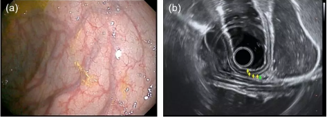 在系統層面,EG-UR5可搭配開(kāi)立醫療全高清電子內鏡系統HD-550和的超聲系統S60,為上消化道病變性質(zhì)診斷提供優(yōu)異的光學(xué)圖像和超聲圖像(圖3)。HD-550內鏡系統搭載了國產(chǎn)首臺雙波長(cháng)LED復合的內窺鏡冷光源VLS-50T,不僅能夠提供高亮度白光觀(guān)察,還支持聚譜成像(SFI)和光電復合染色成像(VIST)兩種特殊光觀(guān)察模式。S60超聲系統除了支持常規超聲掃查模式,還提供彈性成像、造影成像等成像模式。