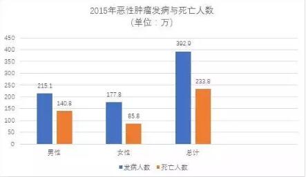 據國家癌癥中心2019年1月發(fā)布的中國癌癥報告統計,惡性腫瘤死亡占居民全部死因的23.91%,且發(fā)病率連續十幾年呈持續上升趨勢,2015年(全國腫瘤中心登記數據通常滯后3年,2015年為最新的數據)惡性腫瘤發(fā)病約392.9萬(wàn)人,死亡約233.8萬(wàn)人,平均每天有約1萬(wàn)人確證為惡性腫瘤,每分鐘有7.5人確診,環(huán)比過(guò)去10年數據,惡性腫瘤發(fā)病率每年有3.9%增幅,死亡率有2.5%增幅。