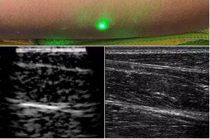 研究人員用一種激光裝置測試了這個(gè)想法,該裝置使用一個(gè)波長(cháng)為1,550納米的脈沖激光來(lái)產(chǎn)生聲波,并使用第二個(gè)連續激光,調諧到相同的波長(cháng)以遠程檢測反射的聲波。第二個(gè)激光器是靈敏的運動(dòng)檢測器,可測量聲波從肌肉,脂肪和其他組織反射回來(lái)而引起的皮膚表面振動(dòng)。反射的聲波產(chǎn)生的皮膚表面運動(dòng)會(huì )導致激光頻率發(fā)生變化,這種變化可以測量。通過(guò)機械掃描人體上的激光,科學(xué)家可以獲取不同位置的數據并生成該區域的圖像。