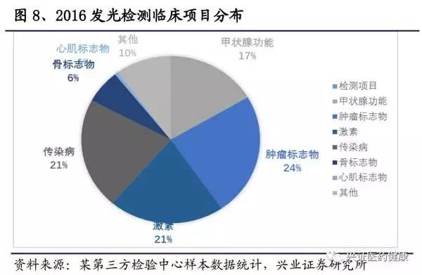 在發(fā)光檢驗終端分布中,有醫院、血站、獨立實(shí)驗室、體檢中心和防疫站等,90%以上在醫院。