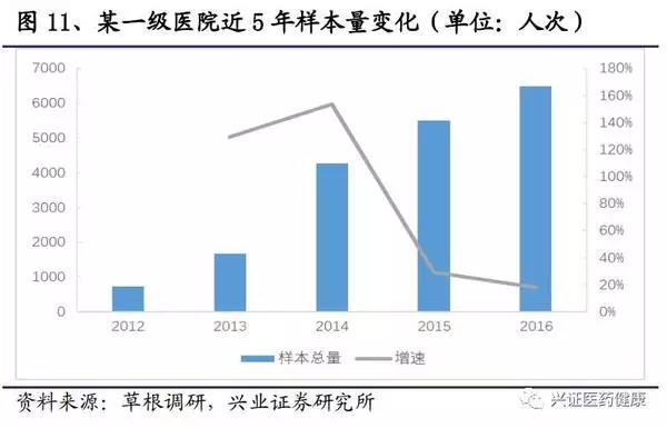 分級診療是近些年國內醫療界的重要課題,2015年國務(wù)院發(fā)表指導意見(jiàn),以提高基層醫療服務(wù)能力為重點(diǎn),以常見(jiàn)病、多發(fā)病、慢性病分級診療為突破口,完善分級診療制度。在2017年兩會(huì )再次重申,在2017年底前要完成85%的覆蓋率。將來(lái),明確診斷將作為基層醫院承擔的重要任務(wù),而今基層醫院缺乏專(zhuān)業(yè)檢驗人員和檢驗設備的現狀,將使得近幾年基層檢驗需求呈井噴式爆發(fā)。