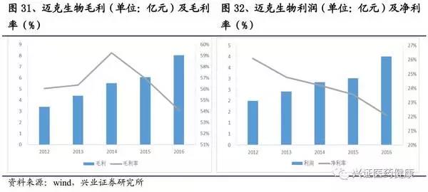 邁克2012年至2016年公司業(yè)績(jì)呈增長(cháng)趨勢,2016年實(shí)現收入14.8億元,CAGR為24.5%,歸母凈利潤復合增速為21.2%,代理產(chǎn)品占收入的50%-60%。
