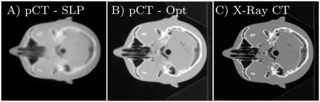 科研人員將質(zhì)子CT圖像與傳統X線(xiàn)CT圖像進(jìn)行了比較。盡管質(zhì)子CT圖像比X線(xiàn)CT圖像模糊,但能夠清晰顯示質(zhì)子與組織之間的相互作用。當前質(zhì)子治療過(guò)程中,質(zhì)子照射范圍和準確性都存在不確定性。如果使用X線(xiàn)CT圖像進(jìn)行治療計劃制定,那么束流實(shí)際到達和釋放能量的位置會(huì )與計劃有3-5%的差異,從而損傷正常細胞;而使用質(zhì)子CT,上述誤差可以降低到1%。