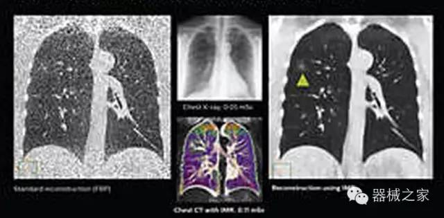 透過(guò)數字化影真芯片DAS系統、球面微平板探測器技術(shù)和濾線(xiàn)柵技術(shù)等硬件技術(shù),整體提高探測器成像的能力,奠定低劑量條件下高清成像的基礎;