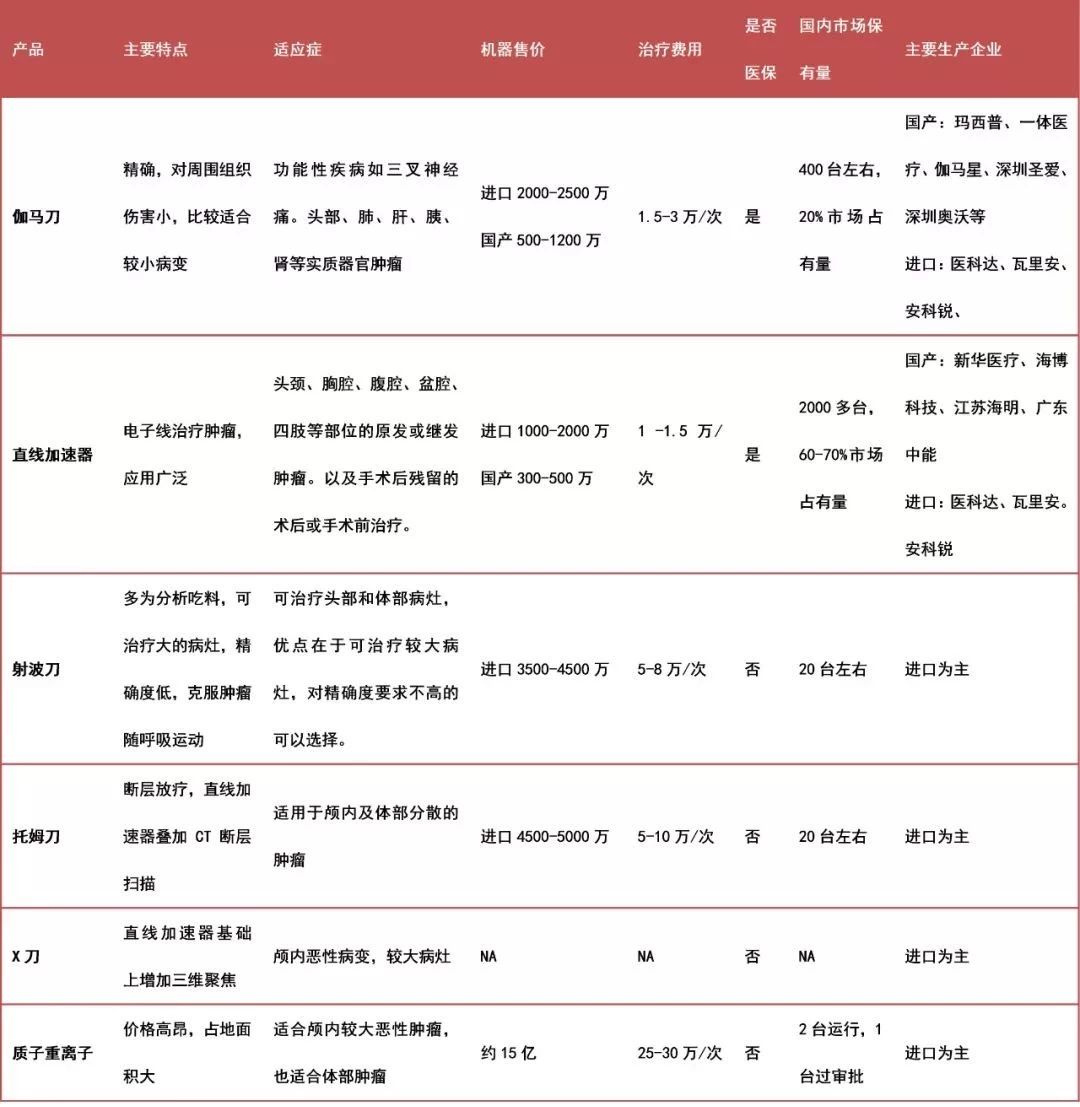 表:各類(lèi)放療設備比較